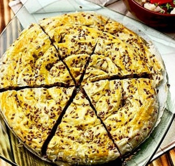 Яйця, сир фета, томатний соус, шпінат, солодкий перець, цибуля, соус песто, солодкий соус чілі, петрушка, чіабатта