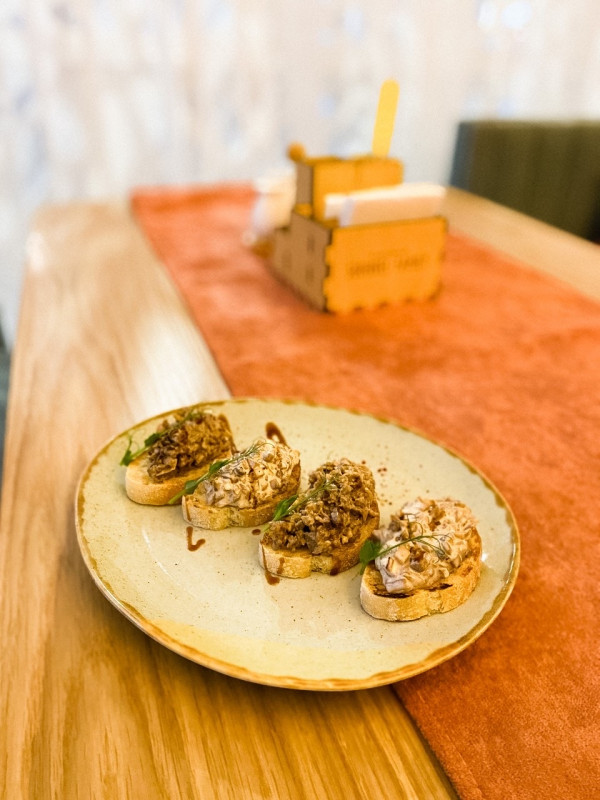 Крем-суп із печериць, деруни з грибами, буряк по-корейськи, компот, хліб